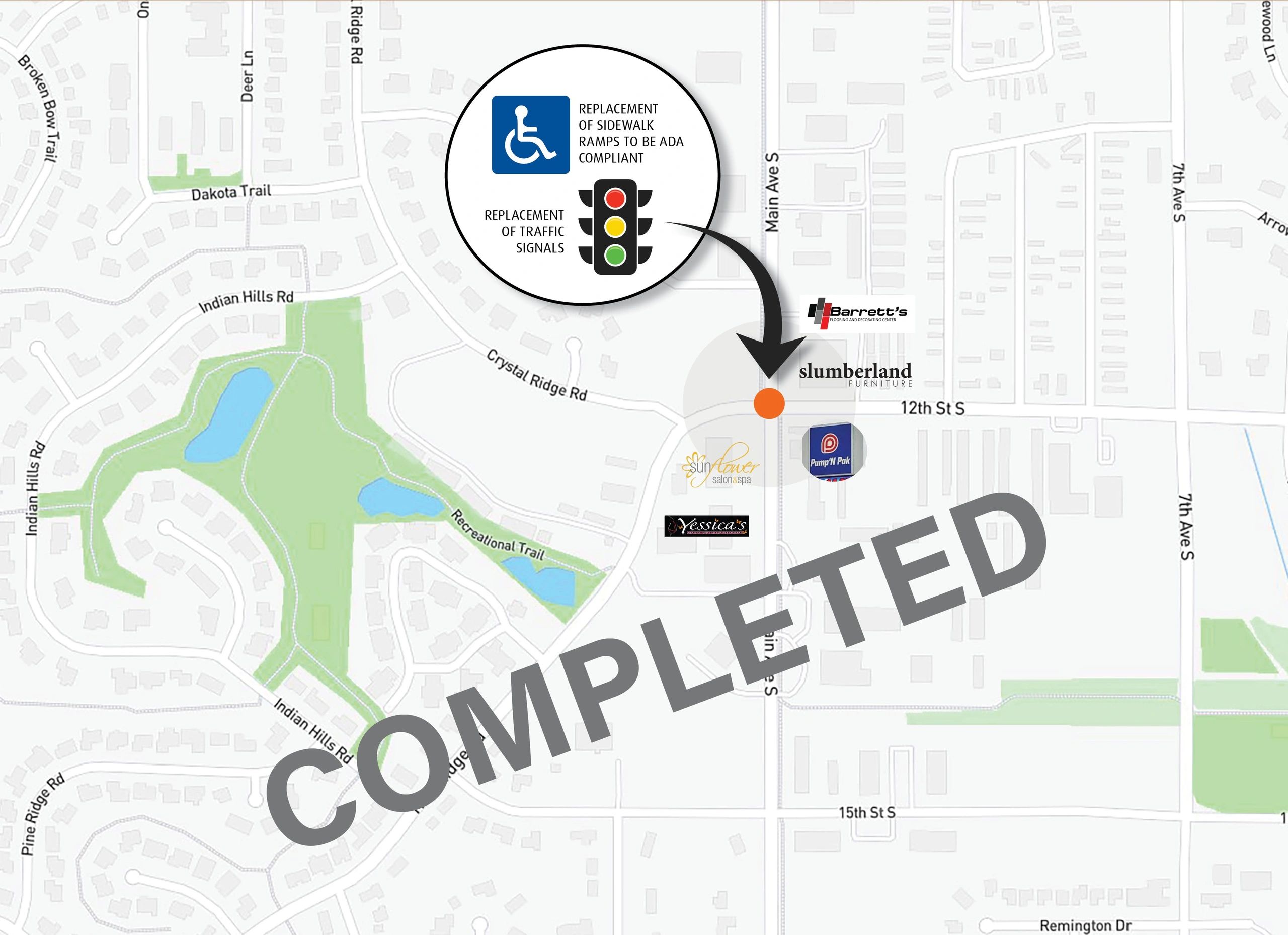 Work has started for the traffic signal and ramp improvement project at 12th St S and Main Ave.
